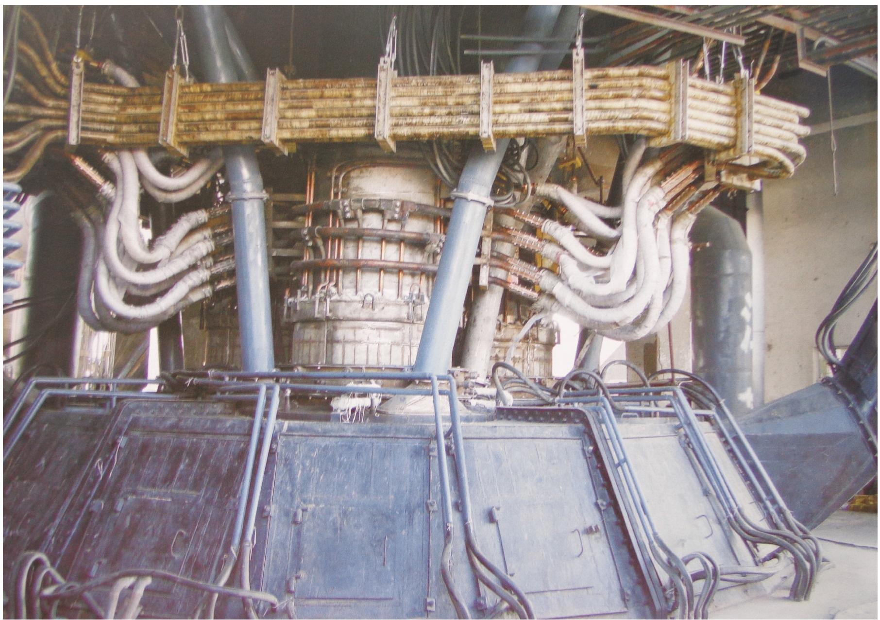 在礦熱爐中,短網(wǎng)是輸送低電壓、大電流電能的裝置。為使它將取自電網(wǎng)的能量最有效地輸入礦熱爐,應(yīng)使短網(wǎng)具有良好的電氣特性。 因此短網(wǎng)載流能力大,電阻小,運行溫度低等特性。
